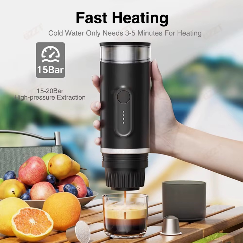 "استمتع بالقهوة الطازجة أينما كنت مع محضر القهوة المحمول، تصميم عملي وسهل الاستخدام لتحضير قهوتك المفضلة بسرعة في أي مكان.