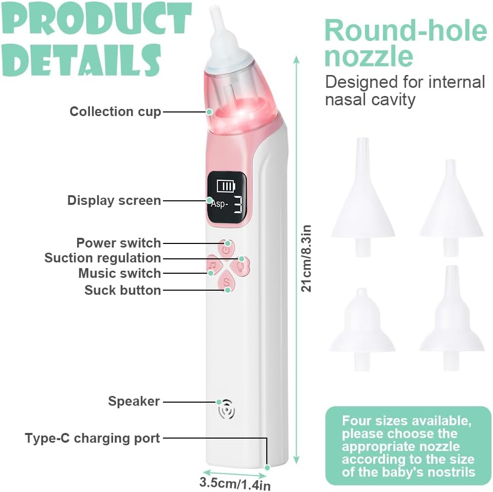 وداعًا لانسداد الأنف… بلمسة واحدة تنظيف فوري وراحة حقيقية—طفلك يتنفس أسهل وينام أعمق. 💡 مميزات المنتج: المميزات شفط آمن ولطيف للرضّع والأطفال مع حماية للغشاء المخاطي. مستويات قوة متعددة + وضع نبضي للتعامل مع إفرازات خفيفة أو كثيفة. رؤوس سيليكون طبية ناعمة بعدة مقاسات لتناسب مختلف الأعمار (خالية من BPA). مانع ارتجاع وخزان منفصل يحافظ على نظافة الجهاز. ضوضاء منخفضة لعدم إزعاج الطفل أثناء النوم. يعمل بالشحن USB؛ استخدام لاسلكي وخفيف بيد واحدة. تفكيك وغسل سهل للأجزاء بعد كل استخدام. شاشة/أزرار بسيطة، مع إضاءة LED اختيارية لتسهيل الرؤية ليلًا. التفاصيل الصغيرة مناسب من عمر حديثي الولادة مع إشراف الكبار. محتويات العلبة: جهاز الشفط، رؤوس سيليكون متعددة، خزان/فلتر، كابل USB، دليل استخدام. العناية: اغسل الأجزاء القابلة للفك بماء فاتر وصابون لطيف واتركها لتجف هوائيًا.